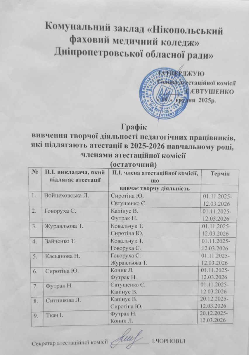 План роботи атестаційної комісії по атестації педагогічних працівників в 2025-2026 н.р.