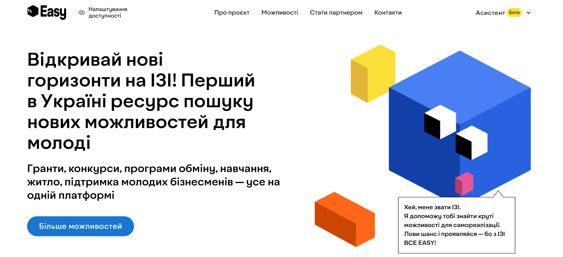 Портал «Можливості для молоді» покликаний стати сучасним навігатором у світі освітніх і професійних перспектив, допомагаючи українській молоді розкривати свій потенціал, долучатися до міжнародних ініціатив та реалізовувати власні ідеї на благо суспільства.